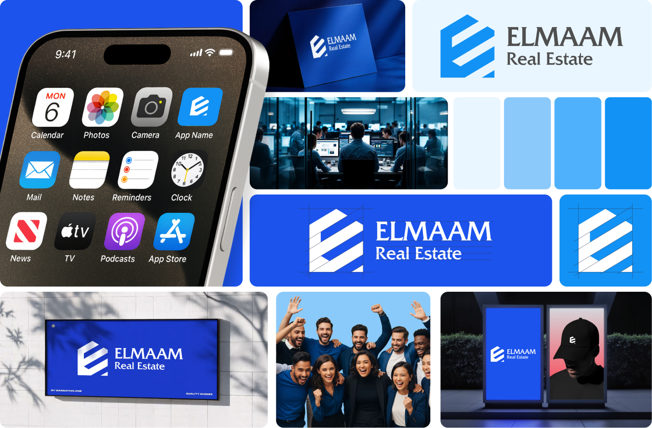 I designed a clean, modern logo for Elmaam Real Estate, built from scratch to reflect trust, professionalism, and strong architectural structure. The icon uses geometric shapes to represent property development, while the Arabic and English typography is balanced for a polished, versatile identity across all brand materials.