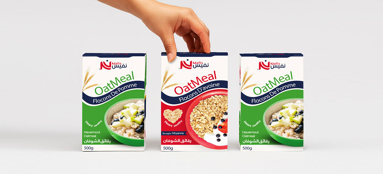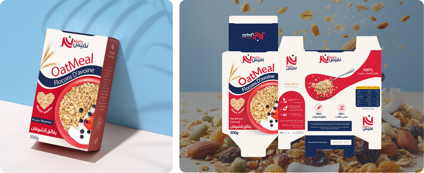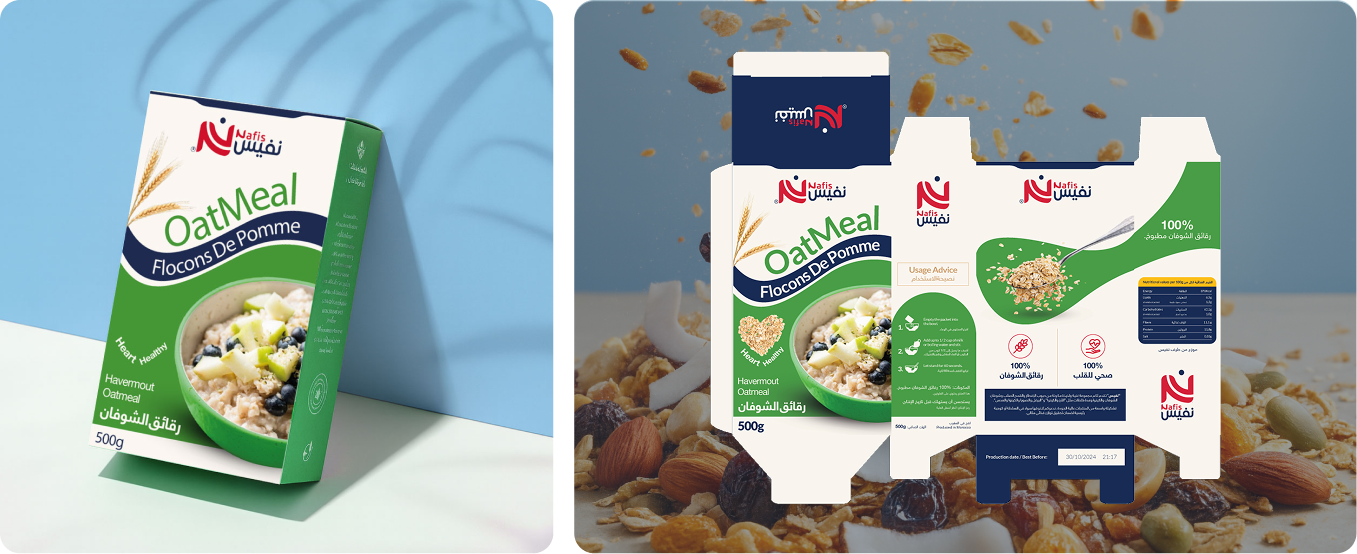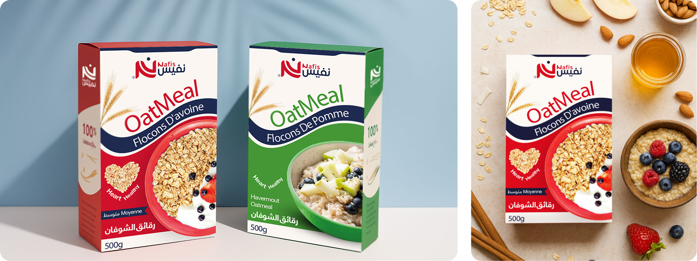 The visual identity for Nafis Oatmeal was created to reflect the essence of a modern, health-focused Moroccan food brand — clean, natural, and trustworthy.