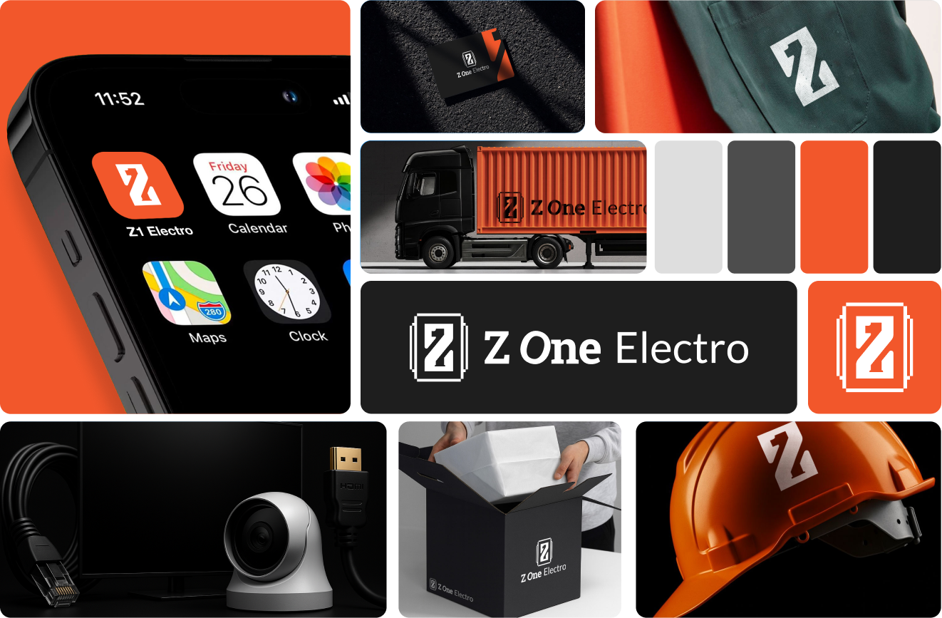I designed a modern and complete brand identity for Z1 Electro and Services, a company specializing in security camera installation and the sale of cameras, cables, and TVs. The logo concept merges the letter “Z” with the number “1” to create a unique symbol that reflects innovation and precision in security technology.